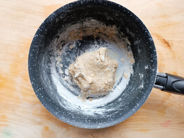 У меня обычные весовые алтайские овсяные хлопья (не быстрого приготовления), поэтому смолола их на кофемолке, может быть по этой причине у меня вмесилось только половина стакана муки, не стала пытаться вмешивать всю муку, посчитала, что будет жестковато....