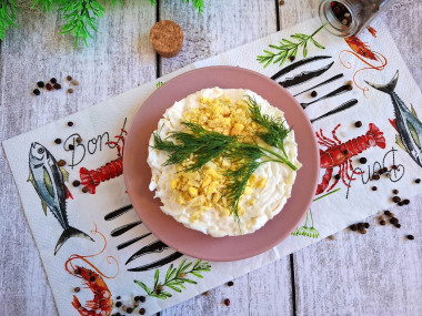 8. Украшаем салат зеленью и тертыми на мелкой терке желтками яиц.