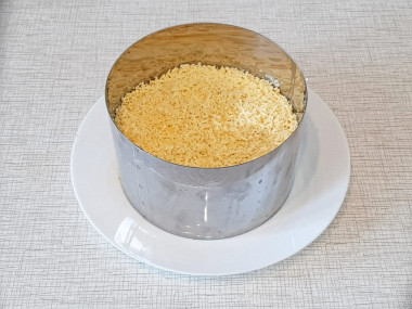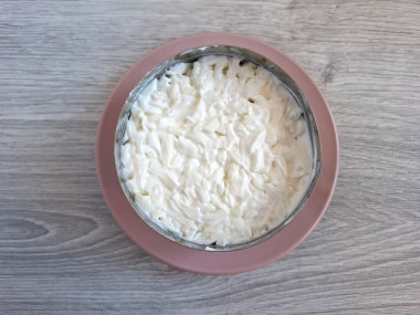 Приступаем к сборке. Слои салата будем промазывать майонезом, но не все, так как шпроты довольно таки жирная и питательная рыбка.