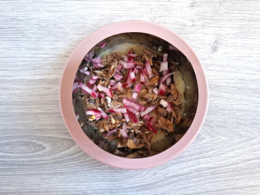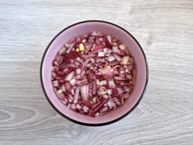 3. Мелко нарезанный репчатый лук (по желанию замаринованный в уксусе).