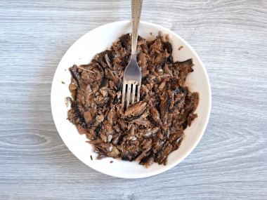 2. Шпроты, измельченные вилкой с небольшим количеством масла от шпрот.