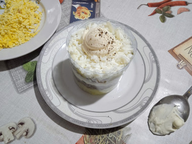Для праздничного стола салат Мимоза со шпротами можно оформить порционно в небольших стаканчиках или креманках, чтобы было видно все слои салата. Для сборки салата также можно использовать разъемную форму для торта или собрать блюдо в салатнике.