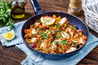 Подавайте паэлью горячей. При подаче по желанию посыпьте блюдо душистым перцем. Приятного аппетита!