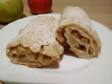 Я вот сама тесто слоеное делать не умею, но штрудель очень люблю. Такая вкусняшка. Я еще иногда добавляю брусничное варенье вместо яблок, тоже вкусно получается, я бы сказал ,что вкуснее,чем с яблоком.