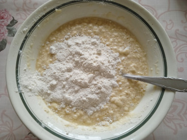 Постепенно подсыпайте просеянную муку и замешивайте тесто. Для ускорения процесса можно воспользоваться миксером.