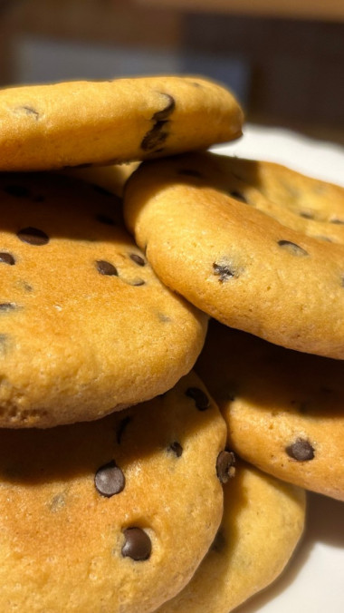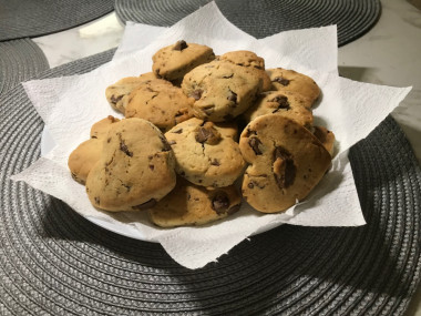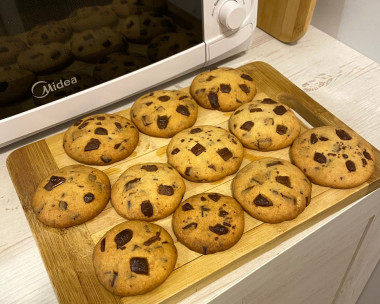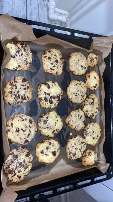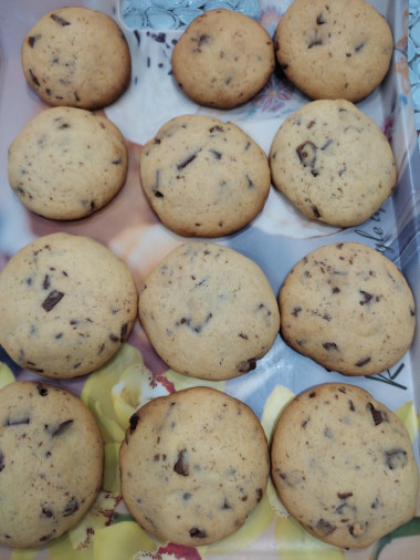 Вкусное, нежное и воздушное Американское печенье с кусочками шоколада получается. У меня при 20 мин. Запекания подгорели. Я поправочку внёс: температура печи 170гр. Время приготовления 10мин.