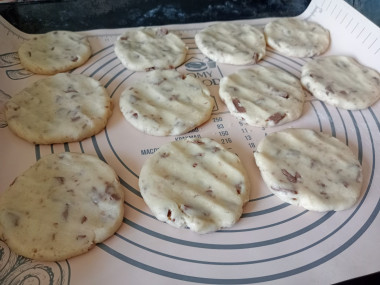 Печенье не должно сильно зарумяниться, разве что немного подрумяниться с краев. Если долго держать печенье в духовке, оно может пересохнуть, поэтому не дожидайтесь полного румянца. Готовое печенье достаньте из духовки, остудите и подавайте. Приятного аппетита!
