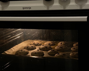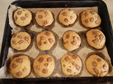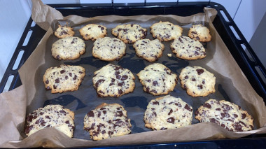 Печеньем доволен, однозначно беру рецепт на вооружение. Делал с молочным шоколадом с изюмом и фундуком. Использовал 85 граммовую плитку - хватило. Лепил руками, так что форма получилась не очень. К сожалению, у меня кусочки шоколада не торчат из печенья, как у автора и некоторых комментаторов. Думаю, дело в слишком мелкой крошке. Запекал по рекомендациям производителя для электродуховки bosh: 30 мин, 150 градусов, 3 уровен, режим верх-низ с конвекцией. Зарумянились, но остались мягкими. В следующий раз сокращу время запекания на 5 мин. Ну, и увеличу порцию раза в 2 - 2,5. Не люблю пустую духовку гонять, да и съедается очень быстро под молоко. Благодарю автора!