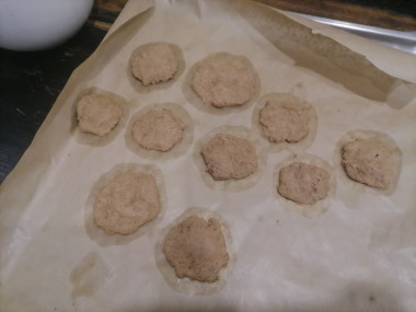 На застеленный пергаментом лист выкладывайте тесто ложкой, придавая печенюшкам круглую форму. Я воспользовалась кулинарной формой диаметром 6 см. Выпекайте печенье в заранее разогретой до 190°C духовке около 20 минут. Точное время и температуру запекания определяйте по своей духовке. Подробнее о тонкостях работы с духовкой и пергаментом - в статьях под шагами.