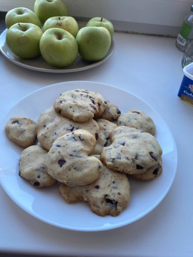 Делала впервые такое печенье. Тесто делается очень легко, не липнет к рукам. По граммовке все по весам делала. Дополнительно муку не добавляла. Из-за этого может быть немного расплылось печеньки. И почему то бледные. Возможно надо использовать тростниковый сахар. Он вроде как придает карамельный цвет и аромат. НО! Они получились мягкие, нежные, тающие во рту!))) Шоколад брала молочный с орехами. В следующий раз сделаю с шоколадом и грецкими орехами. Скоро день рождения сына, хочу напечь много печенья и во дворе деткам раздавать в честь дня рождения. Спасибо за рецепт.🥰🥰🥰