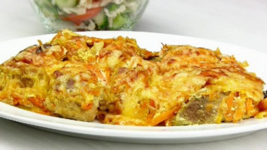 Далее выложите 1/2 часть сыра. Поперчите по желанию.