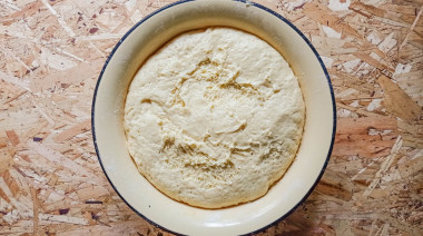 Смажьте дно и стенки миски растительным маслом, чтобы тесто не прилипало к посуде. Готовое тесто также обомните руками с растительным маслом. Миску накройте салфеткой или полотенцем, чтобы оно не сохло и хорошо поднималось.