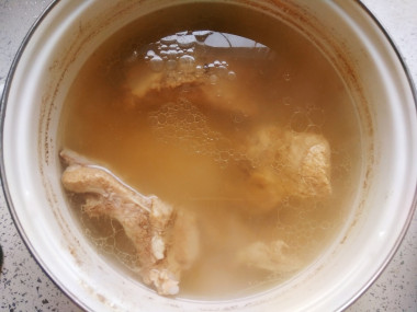 Более легкий бульон: после закипания мяса слейте первый бульон, залейте новую воду и варите далее.