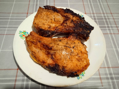 Захотелось на новый год приготовить свиные стейки на кости. Выбрала этот рецепт для готовки, так как очень аппетитное мясо на фото. Обычно я просто в соевом соусе мариновала мясо, а тут ещё и кетчуп, и масло. Решила попробовать сделать чалагач из свинины в духовке и купила кетчуп для шашлыка. Корейку муж порезал по косточкам на стейки толщиной 1.5 см. Сделала маринад из кетчупа для шашлыка, соевого соуса, растительного масла и приправы для шашлыка. Тщательно натерла стейки маринадом и оставила мариноваться на ночь под прессом. Когда пришло время готовки, у нас выключили свет. Поэтому готовили на решетке на мангале, исходя из ситуации. Муж быстро развёл костер, когда дубовые дрова перегорели и остались угли, мы поставили чалагач на решетке на угли. Готовили минут 30, переворачивая решетку. Аромат восхитительный. В таком маринаде любое мясо будет очень вкусным. К Новому году румяные стейки были на столе. Мясо получилось очень нежное и сочное с румяной корочкой. В следующий раз непременно попробую приготовить чалагач из свинины в духовке, предварительно обжарив на сковороде. Стейки очень хорошо сочетаются с овощным салатом и отварным картофелем. Маринад прекрасный! Спасибо автору!