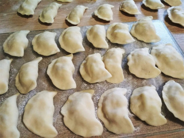 Очень мне понравилось работать с постным тестом. Я даже разницы не почувствовала в сравнении с обычным! Замесилось отлично, раскатывалось хорошо. При варке не расползалось, но при этом стало очень нежным.