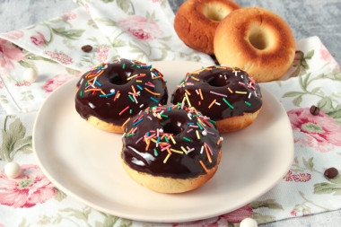 Тесто для пончиков делала строго по рецептуре, единственное для запекания использовала форму для пончиков.