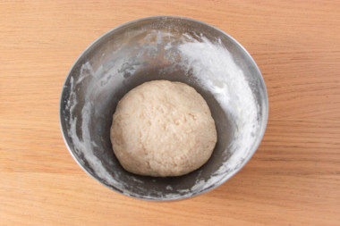 Когда тесто окончательно отстанет от стенок, соберите его в шар. Накройте миску с тестом полотенцем, крышкой или пленкой и оставьте подходить на час примерно.