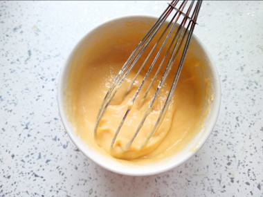Разбейте яйцо в небольшую миску, добавьте к нему соль и перец, перемешайте. Добавьте для начала две столовые ложки муки. Перемешайте. Добавьте растительное масло.