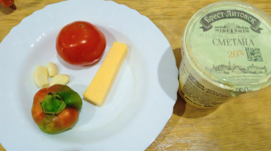 Как сделать закуску с помидорами и сыром? Первый вариант закуски на помидорах мы приготовим с укропом и зеленым луком. Для этого подготовьте необходимые ингредиенты.