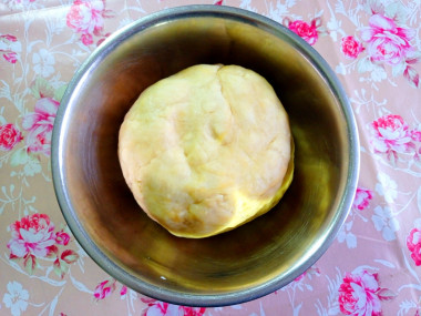 Вымешивайте тесто около 5 минут. Оно должно получится достаточно эластичное. Если тесто немного крошится, то добавьте ещё растительного масла. Если оно получилось жидковатое, то добавьте немного муки. Накройте тесто полотенцем и оставьте на 10-15 минут. За это время в муке разовьется клейковина, и с ним будет удобнее работать. Обратите внимание, что это бездрожжевое тесто, поэтому не стоит ожидать от него особой нежности и мягкости. Удачной выпечки!