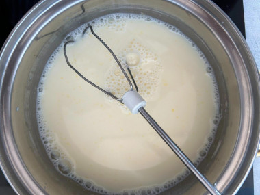Смесь должна закипеть — на поверхности начнут появляться пузыри, и она будет "пыхтеть". Огонь сразу выключайте. Заварная основа для крема готова.