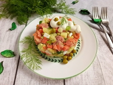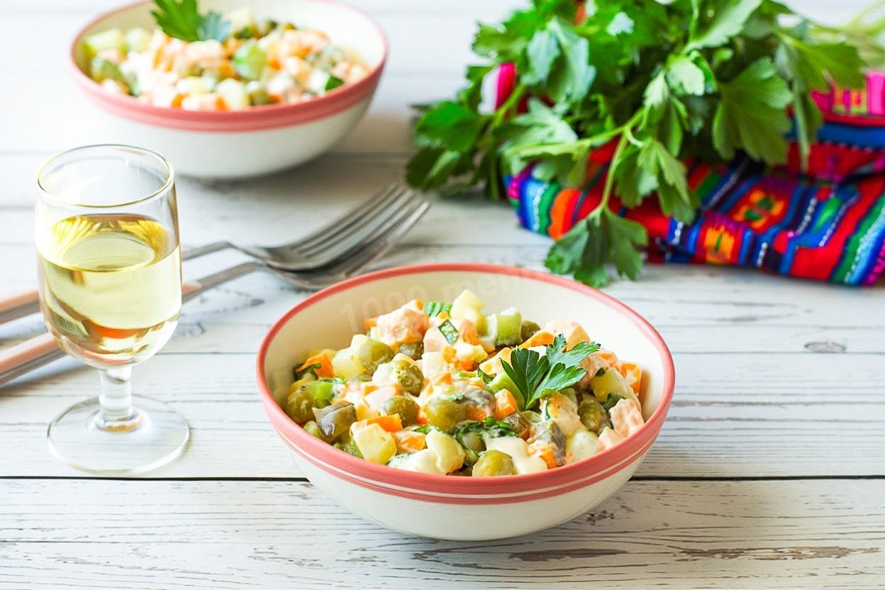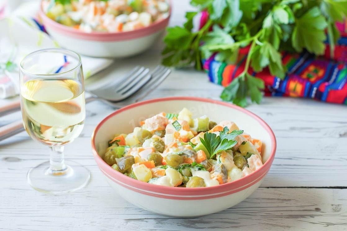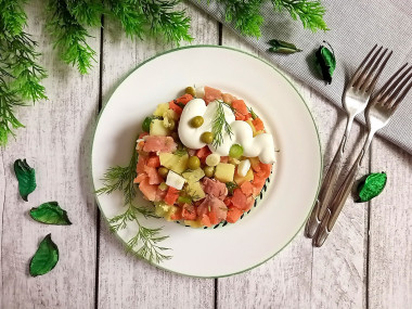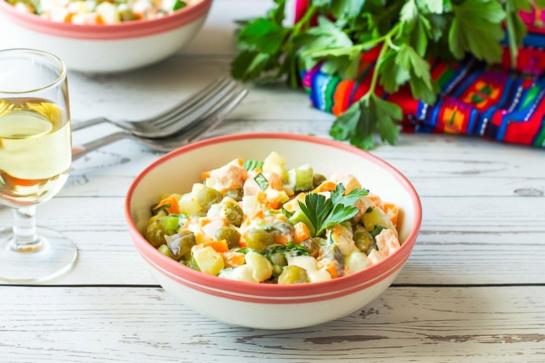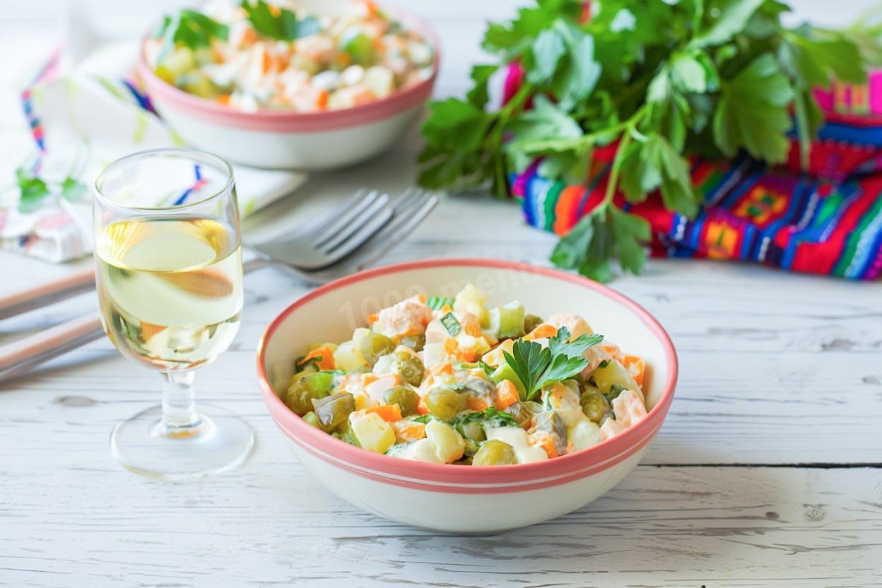 Пожалуйста! С рыбой классический оливье приобретает совершенно новый вкус. И разнообразнее, и полезнее. Готовьте с удовольствием!