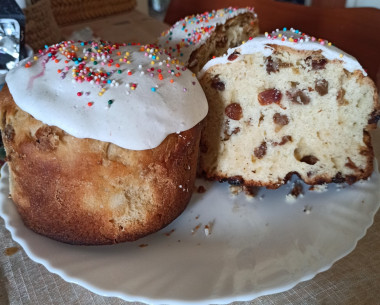 Приготовила по рецепту,кроме того,что уксуса взяла на треть меньше. Вкус очень приятный, понравился. Глазурь тоже удачная,не осыпается. У меня получилось два небольших кулича. Тяжелее,чем привычные изделия на закваске,разрезала на третий день после выпечки,сухости нет. Но подъёма хотелось бы больше. Может повлиял ручной замес,на миксере было бы лучше. Температурный режим соблюдала,как у автора. Однозначно буду готовить. Самый главный плюс- быстро и вкусно.