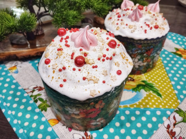 Кулич получился невероятно нежным, вкусным. Замечательно поднялся и хоть я боялась запаха уксуса,его совсем не было. Готовила на пробу одну порцию,а в итоге замешивала ещё три раза,всем очень понравился, пекла несколько куличей.