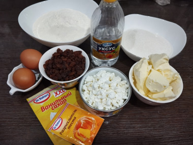 Использование в рецепте и соды, и разрыхлителя обосновано тем, что творожное тесто достаточно влажное и это необходимо для его большего подъема. А указанное количество уксуса избавит выпечку от привкуса соды, при этом запаха уксуса не будет.