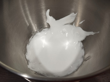 Продолжая взбивать, постепенно всыпайте сахар с ванилином. Взбивайте около пяти минут, пока масса не увеличится в объёме. Чем лучше взбивать? Это можно делать стандартным миксером или блендером с насадкой "венчик".