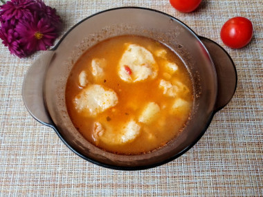 Получился оригинальный суп с вкусными, воздушными клёцками. Всем понравилось!