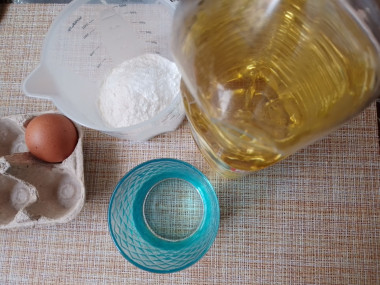 Слегка взбейте яйцо со специями вилкой. Процесс взбивания здесь условный, необходимо просто перемешать ингредиенты, поэтому венчик и, тем более, миксер, не нужны. Добавьте две ложки муки, а затем растительное масло. Перемешайте массу вилкой.