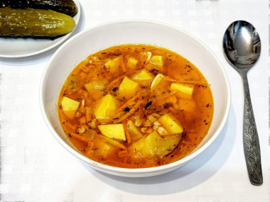 По совету автора рецепта рассольник с тушенкой и перловкой, предварительно замочила крупу на 1 час, до приготовления супа. Перловка получилась мягкая и разваренная.
