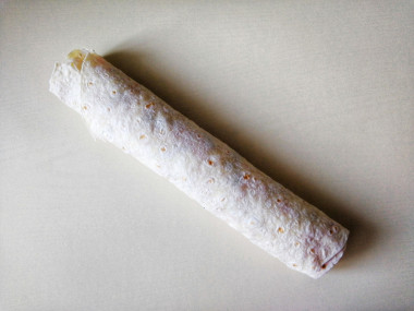 Лист лаваша разложим на гладкой чистой поверхности, распределим по нему начинку и свернем плотно в рулет. Поместим рулет в пакет или обернем пищевой пленкой и отправим в холодильник на 2 – 3 часа.