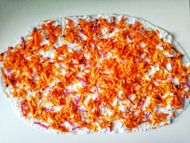 Закуску с корейской морковью и лавашом рулет сделала по просьбе мужа. Ему очень нравятся закуски такого типа.