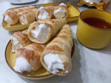 Трубочки из слоеного теста с белковым кремом готовы. Приятного чаепития!