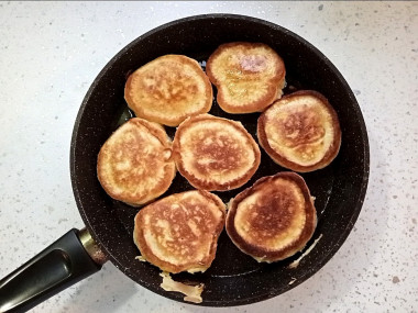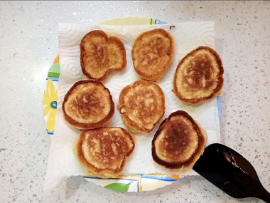 Жарила на антипригарной сковороде в разогретом масле. Огонь сделала средний, чтобы оладьи хорошо поднялись. После жарки выкладывала на бумажное полотенце, чтобы впитался лишний жир.