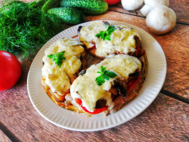 Вышло великолепно! Мясо получилось настолько сочное и мягкое! Вместе с помидорами и грибами - очень вкусно!