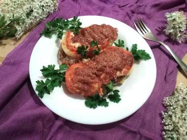 Очень простой и быстрый способ приготовления мяса в духовке, как мне показалось. У меня процесс занял от силы 20 минут. Отбила, посолила, уложила слоями, поставила в духовку (она у меня с таймером) и пошла гулять с ребёнком.