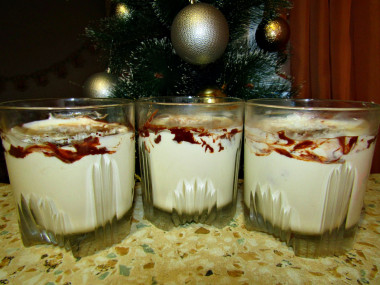 Сметанную массу распределите по креманкам или порционным стаканчикам. Поставьте в холодильник на 20-25 минут или дольше до застывания.