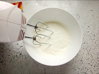 В миску выложите сметану, всыпьте сахар и ванилин. Взбейте все до растворения сахара и появления воздушных пузырьков. Ванилин можно заменить на ванильный сахар. Как правильно это сделать читайте в отдельной статье по ссылке после рецепта.