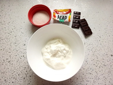Приготовила десерт птичье молоко на агар-агаре. Сметана у меня была 20%, переложила ее в глубокую миску. Мелкий сахарный песок и порошок агара соединила в мисочке. Взбивала сметану и потихоньку подсыпала сухую смесь. Добившись растворения сахара разложила массу по небольшим креманкам.