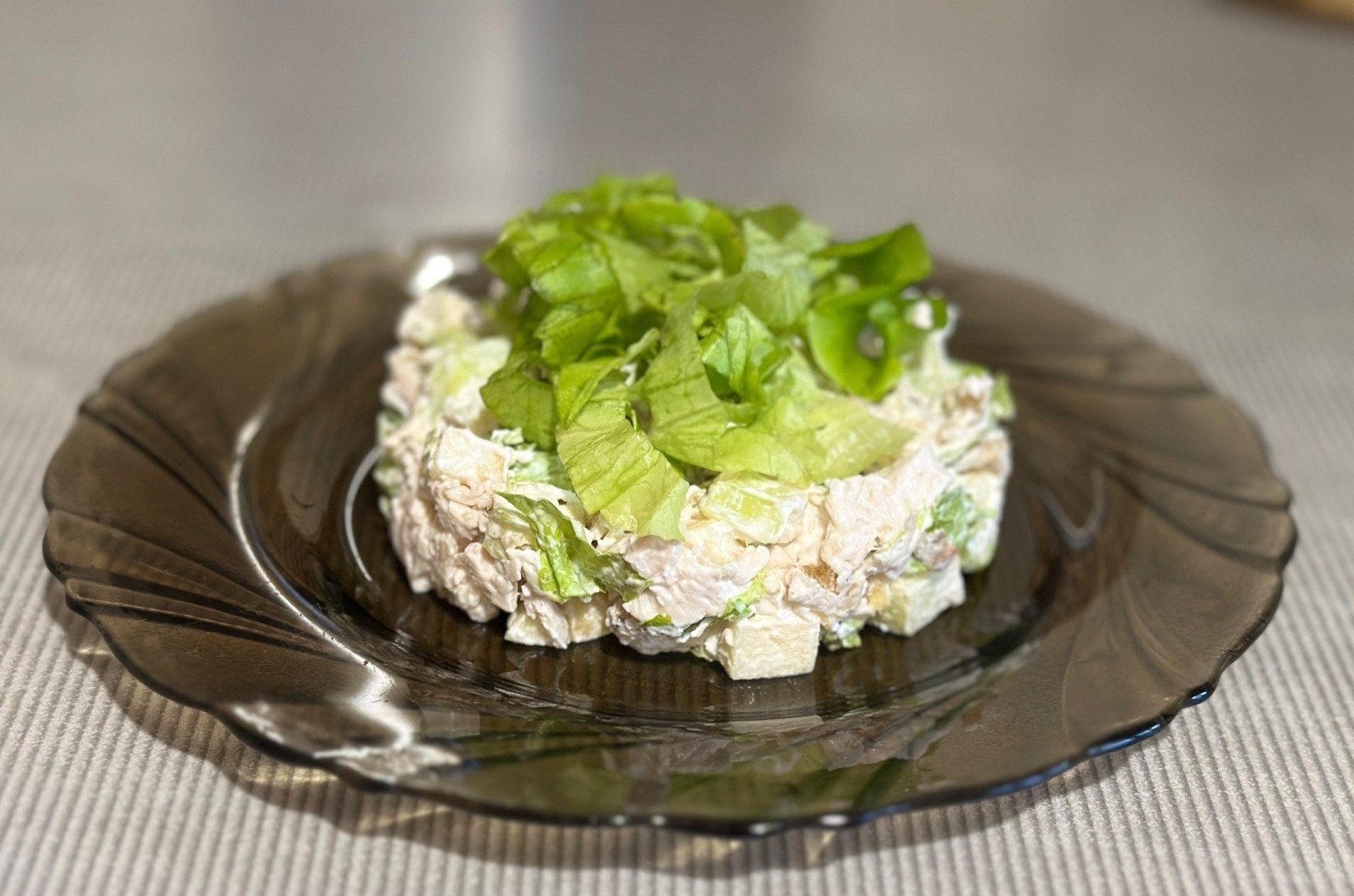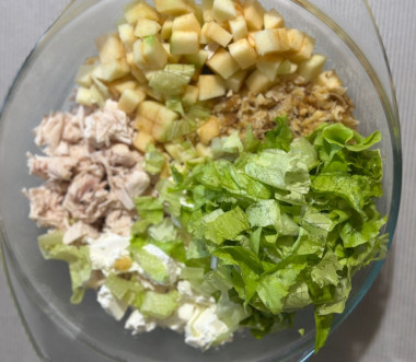 Готовлю этот салат с курицей и яблоком уже несколько раз! Оказалось очень вкусное сочетание курица, яблоко и грецкие орехи, сытный, и всем дома нравится. Сыр пробую разный очень понравился в этом салате сыр с плесенью. Иногда заправляю домашним майонезом, тоже очень вкусно. Попробуйте!
