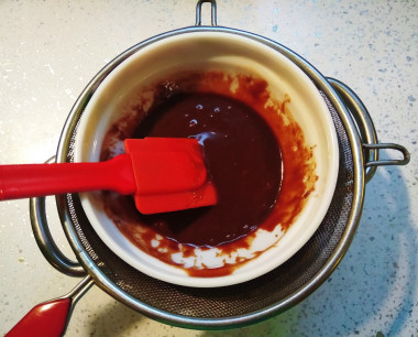 Постоянно помешивая массу, добиваемся равномерной текстуры и жидкого состояния. Ни в коем случае не бросайте смесь без присмотра. Не старайтесь растворить шоколад до конца: он может подгорать. Лучше немного раньше снять его с огня, продолжая мешать массу лопаткой. Тогда нерастаявшие кусочки растворятся сами.