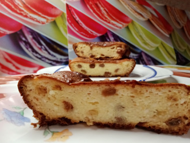 Протираем через ситечко творог, после добавляем в него растительное масло, всыпаем манку, соду, соль и ванильный сахар. Отдельно взбиваем венчиком яйцо с сахаром и также добавляем полученную массу в творог. Хорошенько моем изюм без косточек, после запариваем его в кипятке, держим минут пять. Воду сливаем, изюм откидываем на дуршлаг, даем стечь. Затем обсушиваем и кладем в творожную смесь. Хорошо перемешиваем. Берем любую удобную форму, промазываем ее сливочным маслом, присыпаем панировочными сухарями и выкладываем массу из творога. Поверхность разравниваем, а потом обмазываем ее сметаной. Ставим в предварительно разогретую духовку на полчаса. Наша аппетитная еда должна покрыться румяной корочкой.