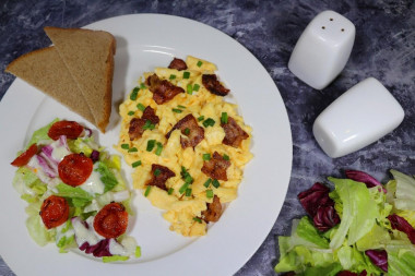 Прикрепляю две фотографии, на одной из который просто классический скрэмбл из яиц, без дополнительных добавок. Вкусно!!! Очень вкусно!!!