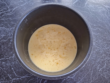 4. Вылейте яично-молочную смесь в смазанную сливочным маслом чашу мультиварки и выставите режим "Мультиповар" на 35 минут.