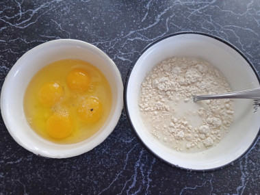 1. Муку соедините с молоком и перемешайте, чтобы не было комочков