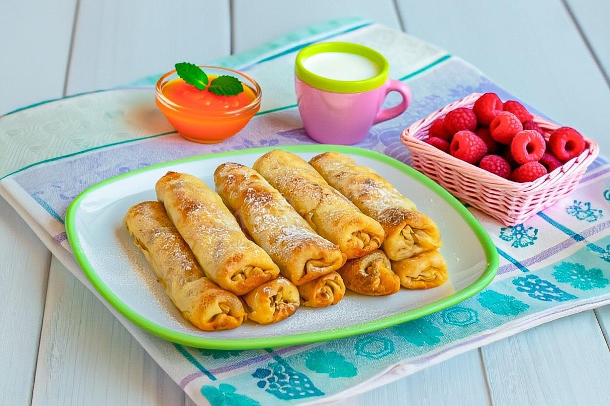 Любители тонких сладких блинчиков обязательно оценят это блюдо. Сладкая ванильная начинка из творога с изюмом прекрасно сочетается с тонкими блинчиками. Внешний вид этого блюда может украсить стол на детском празднике.