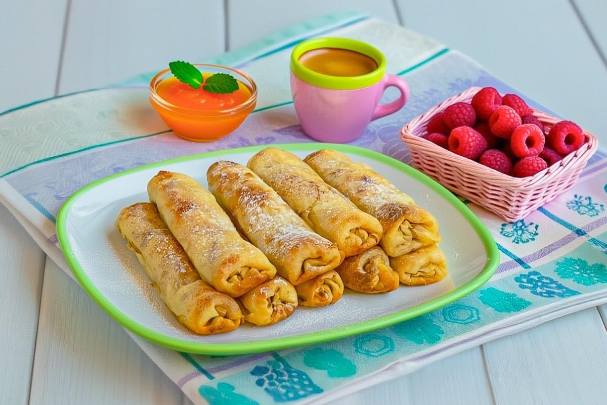 В некоторых регионах такие запеченные блинные рулетики называют «блинчатым пирогом».